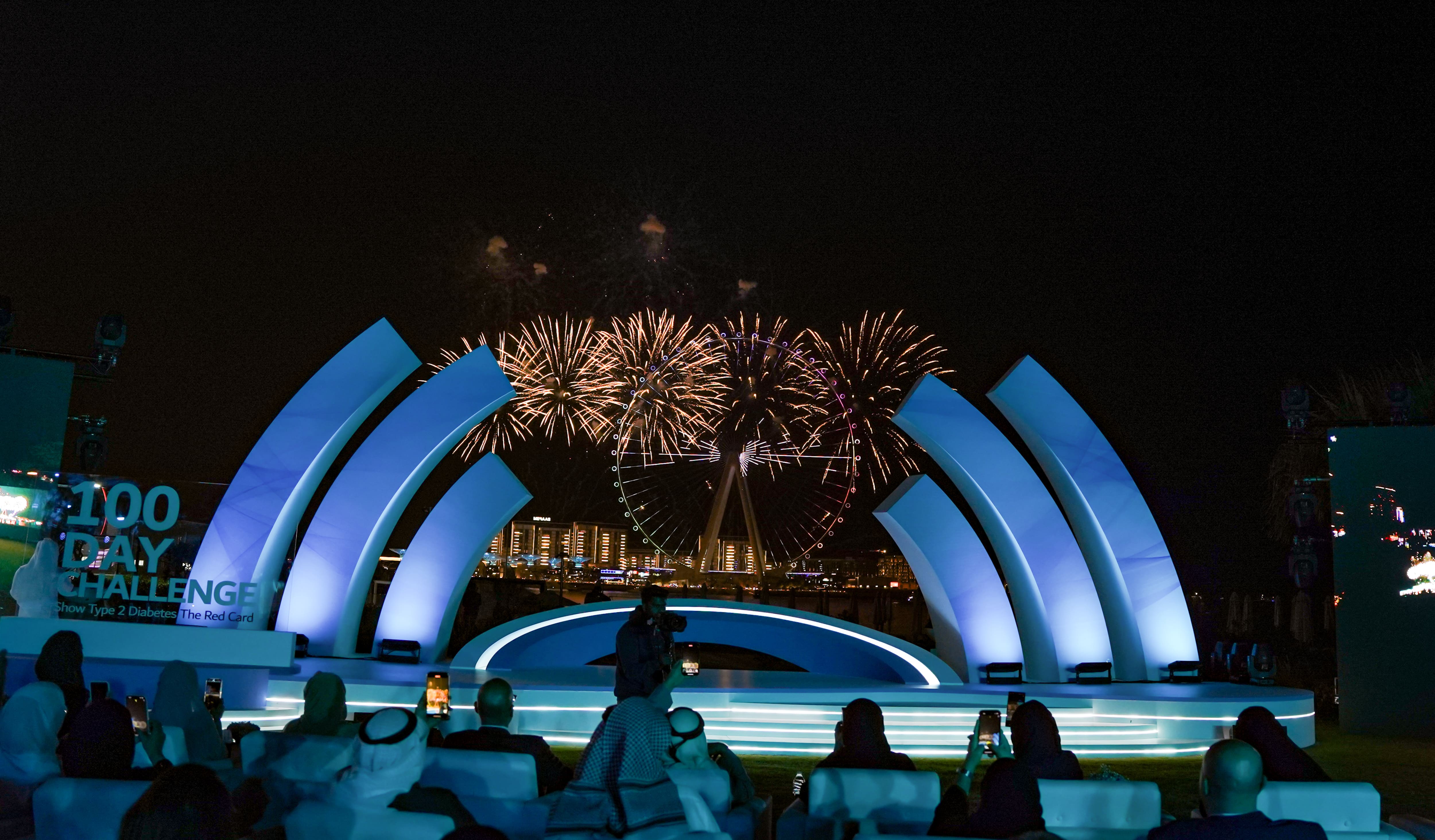 A choreographed drone show over the Dubai Frame depicted the campaign’s emblem, symbolizing unity in the fight against diabetes.