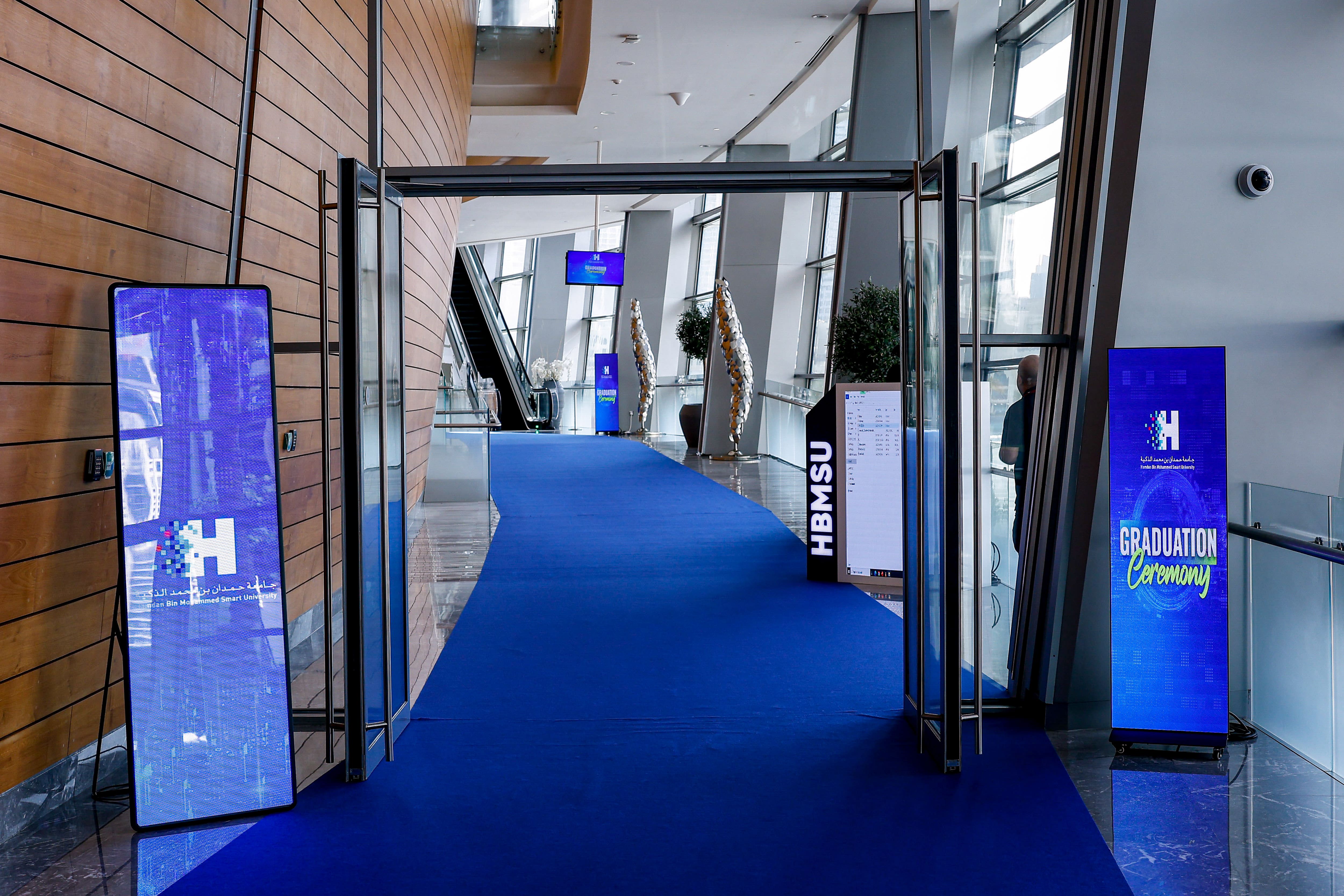 We viewed the graduation as a narrative arc, one that merged intellectual achievement with emotional celebration. Our approach was to animate HBMSU’s vision of smart learning through spatial design, multimedia storytelling, and elevated production. We treated the ceremony not as a formal event, but as a lived brand moment for the university.